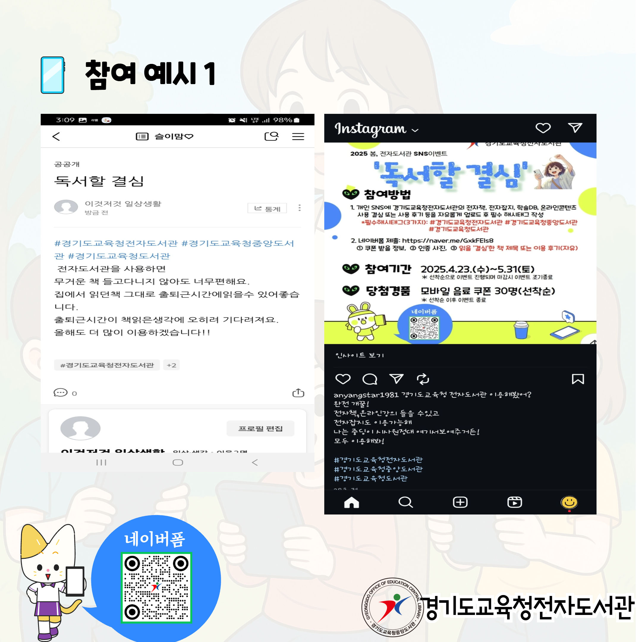 필수 해시태그 3개: #경기도교육청전자도서관 #경기도교육청중앙도서관 #경기도교육청도서관
