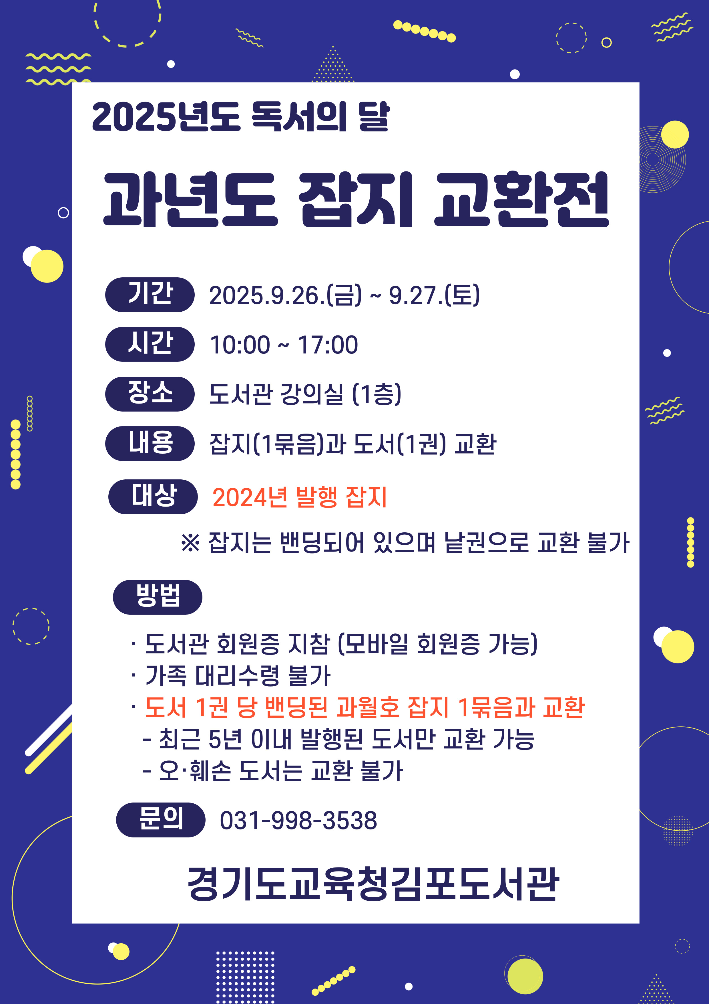 2025년 독서의 달 행사로 과년도 잡지 교환전 안내