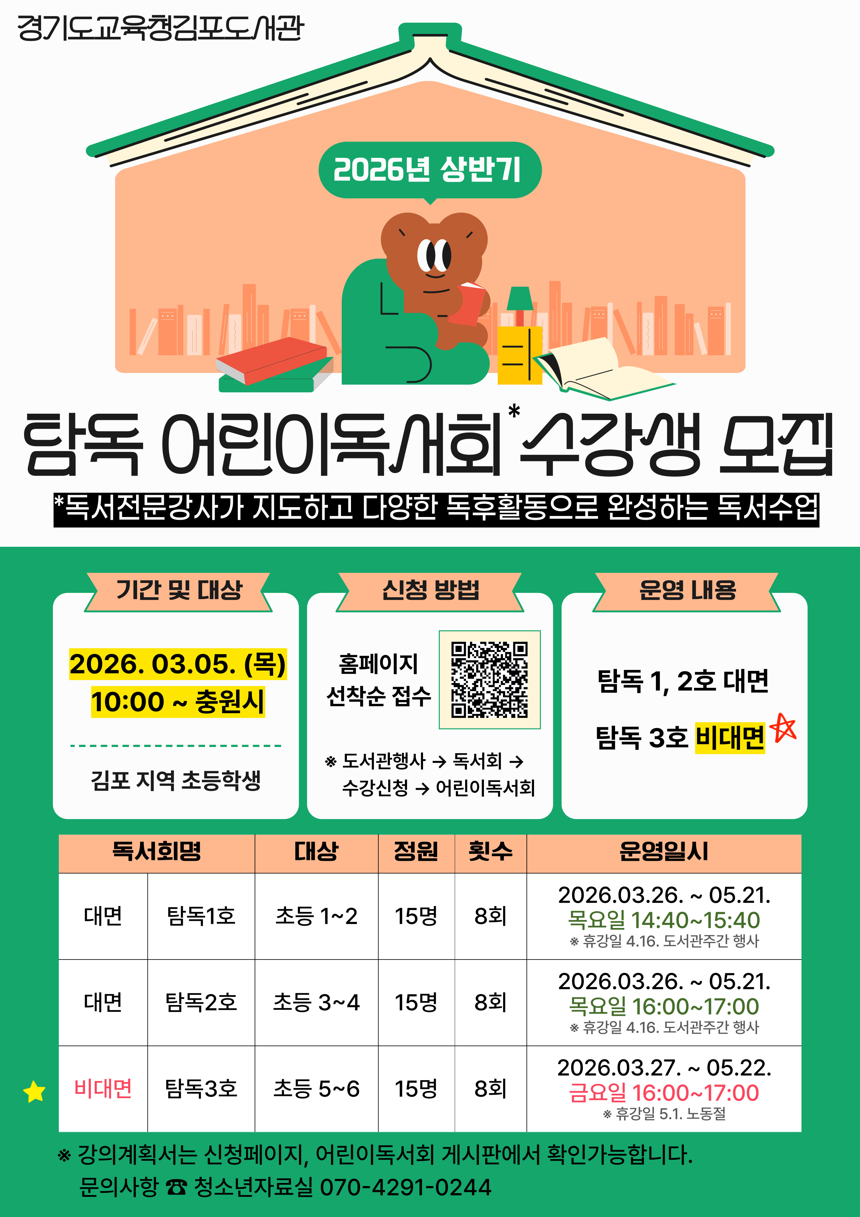 - 2026년 상반기 어린이독서회 수강생 모집 안내