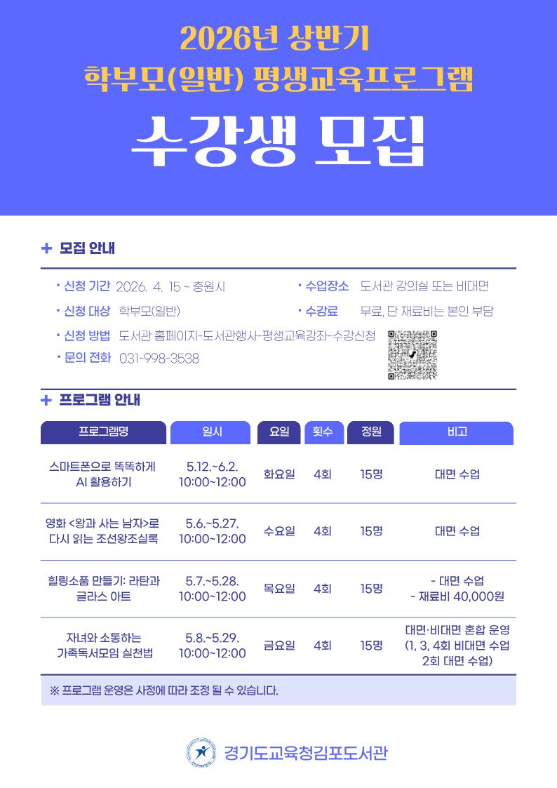 <2026년 상반기 학부모(일반) 평생교육프로그램 수강생 모집>