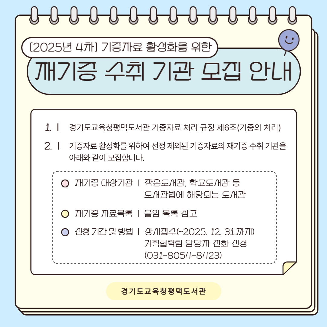 (기증자료 활성화를 위한)재기증 수취 기관 모집 안내(2025년 4차)