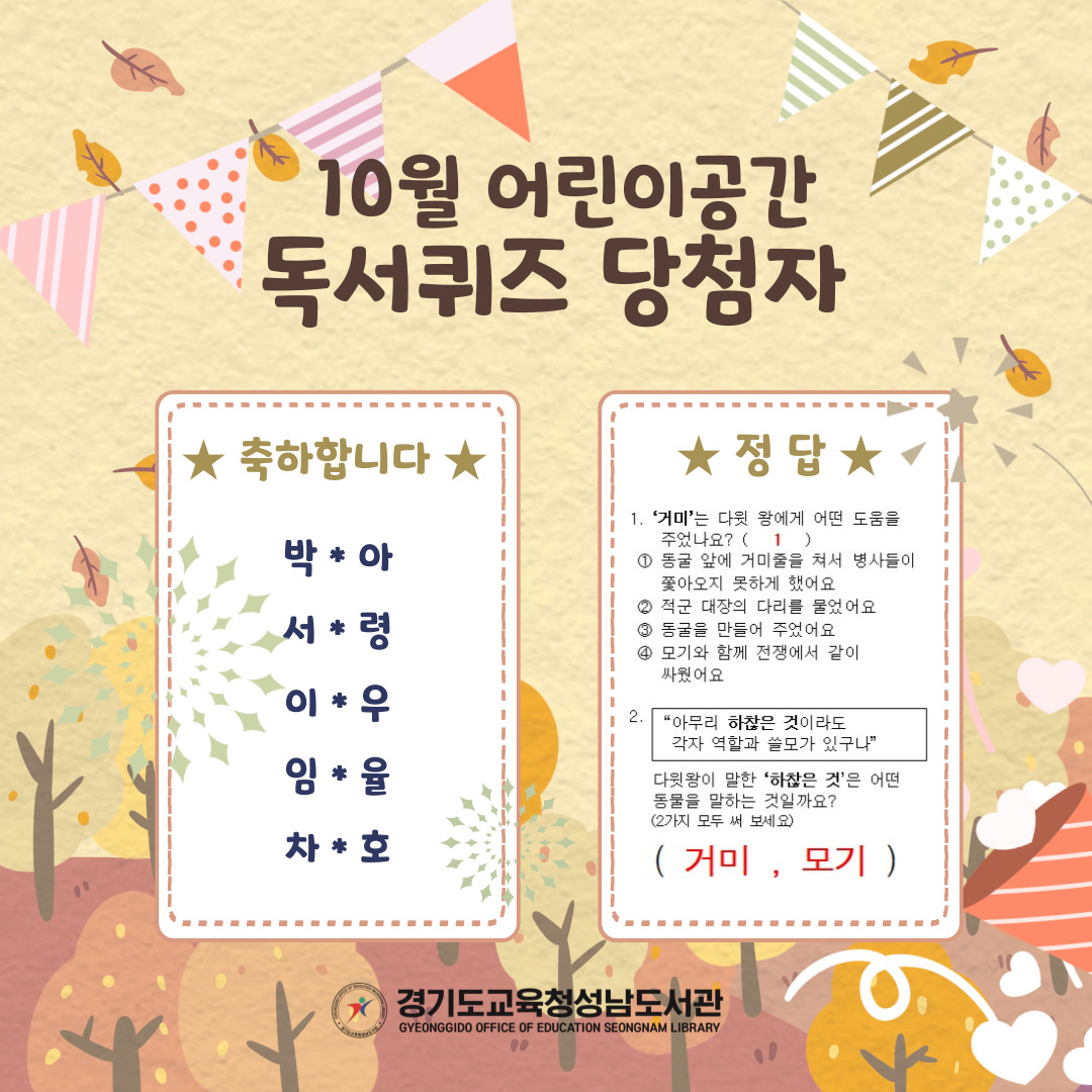 - 2025년 10월 어린이공간 독서퀴즈 당첨자 발표