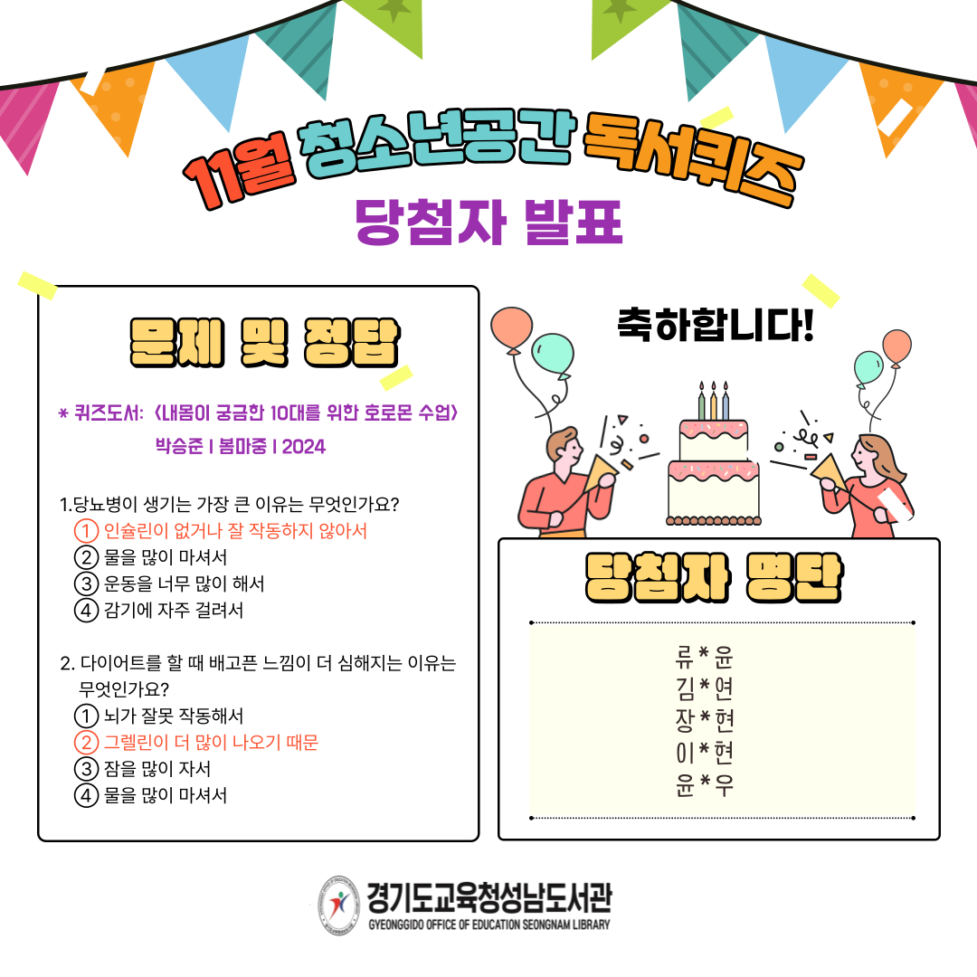 - 2025년 11월 청소년공간 독서퀴즈 당첨자 발표
