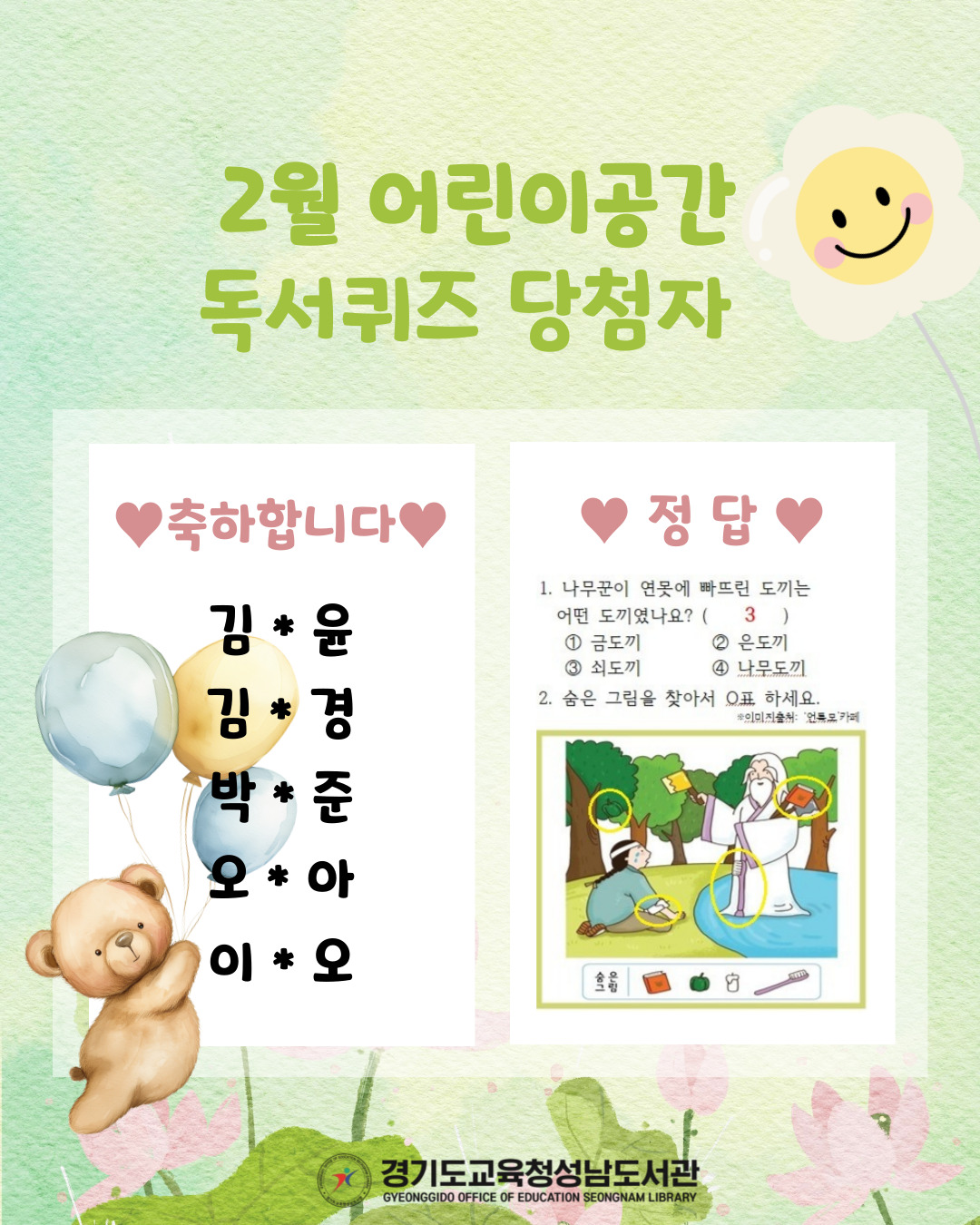 2026년 2월 어린이공간 독서퀴즈 당첨자를 발표합니다.